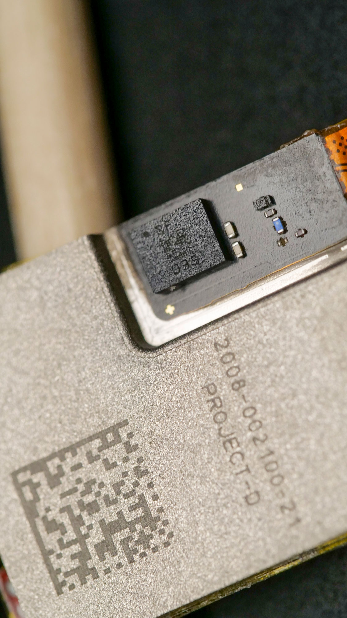 Inside the main body of the device, which is one solid piece of metal, the circuitry is secured with four tiny screws. After removing them, the whole circuit pops right out and we can see that it’s made of different types of PCB material wrapped around a battery. I ripped one of them accidentally while unwrapping it.