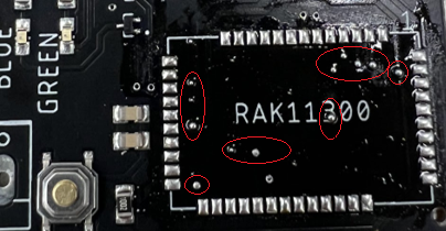 We love using the RAK module with our project, but something that is proving to be quite difficult is the soldering of such a small module. Unfortunately, at the time we were soldering, the EPICS lab was not yet equipped with a hot plate, so we were soldering our RAK with hand-applied solder paste and a hot air gun. This almost always made us apply way too much solder paste and created solder bridges under the module. The proper way to do this kind of solder work would be either by hand or with a stencil and a hot plate.