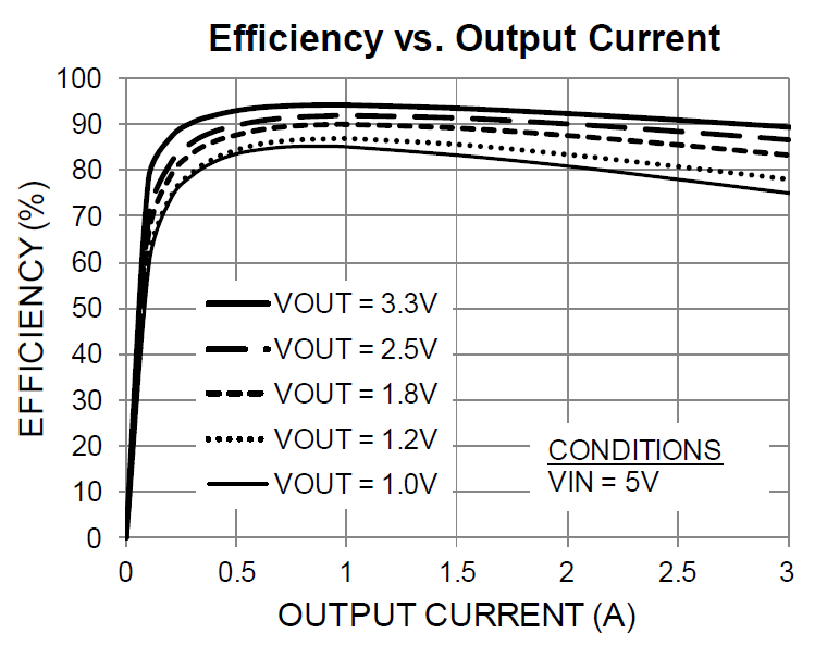 >90%, 5V in, 3.3V @ 0.3 ~ 3 A