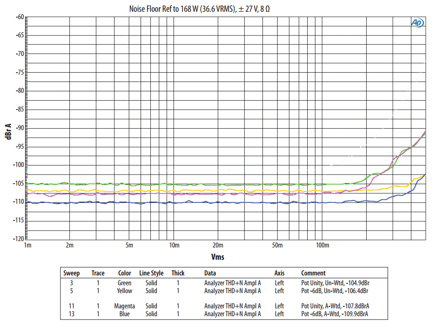 < 0.03% @ Full Power (8 Ω, 150 W)